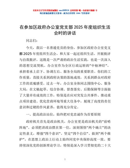 / 在参加区政府办公室党支部2025年度组织生活会时的讲话