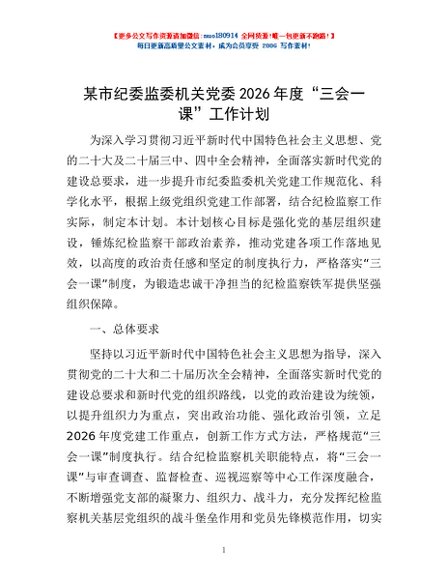 / 某市纪委监委机关党委2026年度“三会一课”工作计划