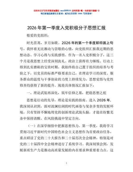 / 2026年第一季度入党积极分子思想汇报