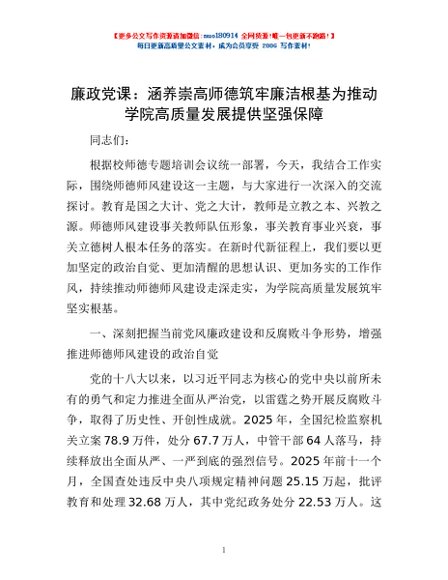 / 廉政党课:涵养崇高师德筑牢廉洁根基 为推动学院高质量发展提供坚强保障