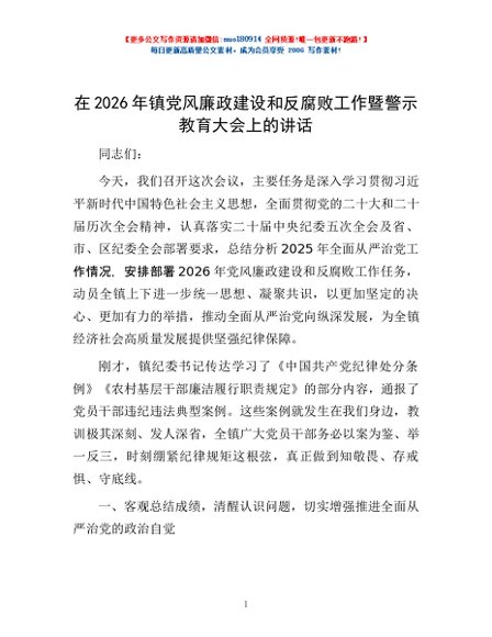 / 在2026年镇党风廉政建设和反腐败工作暨警示教育大会上的讲话