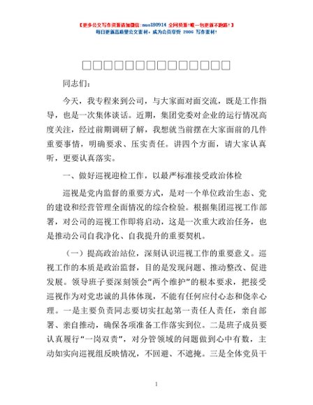 / 在赴公司工作指导调研时的讲话