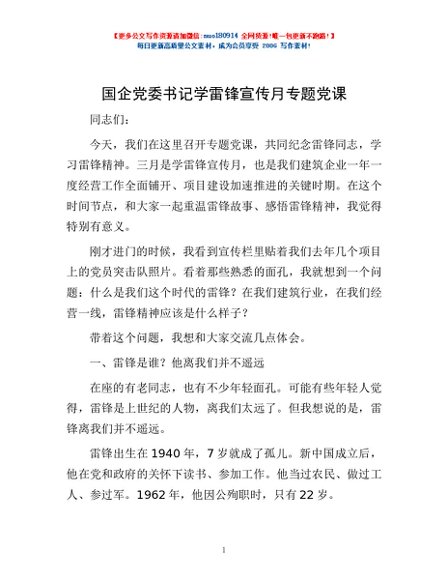 / 国企党委书记学雷锋宣传月专题党课