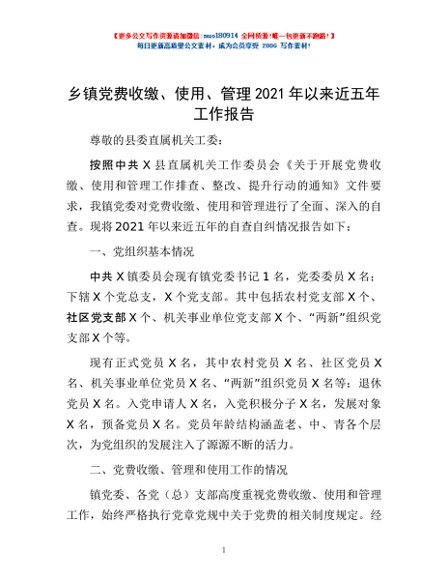 / 乡镇党费收缴、使用、管理2021年以来近五年工作报告