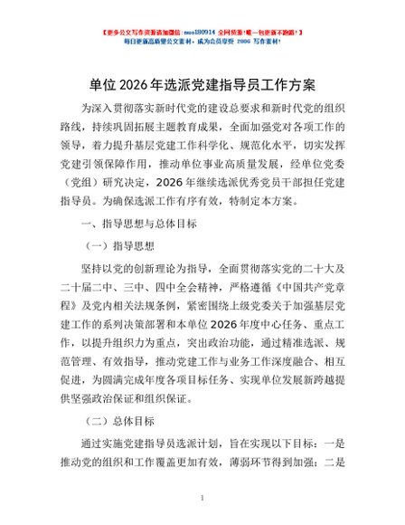 / 单位2026年选派党建指导员工作方案