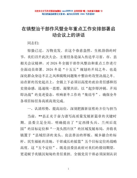 / 在镇整治干部作风暨全年重点工作安排部署启动会议上的讲话