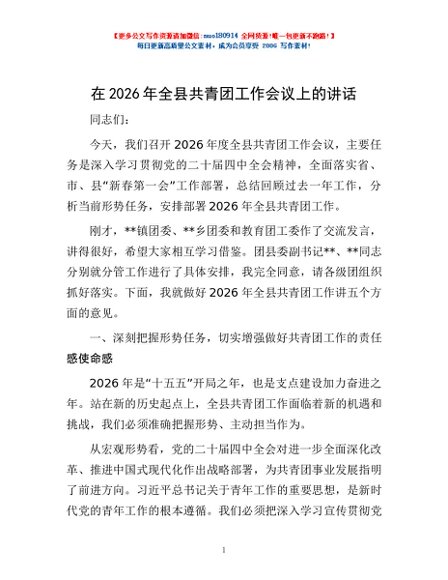 在市委农村工作领导小组2026年第1次全体会议上的讲话