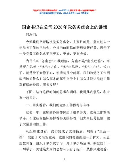 / 国企书记在公司2026年党务务虚会上的讲话