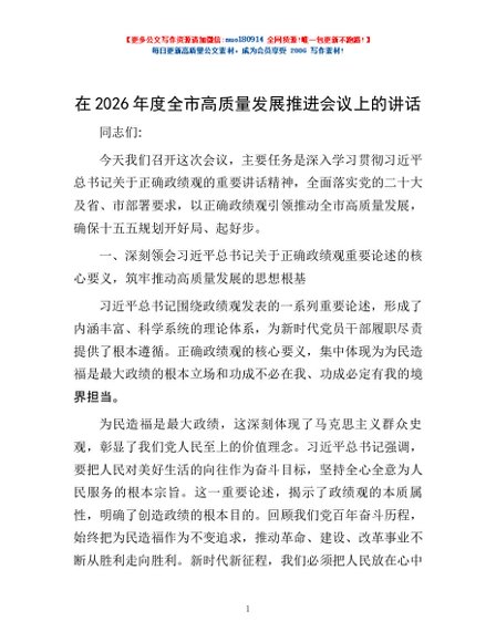 / 在2026年度全市高质量发展推进会议上的讲话