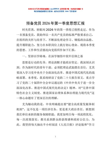 / 预备党员2026年第一季度思想汇报