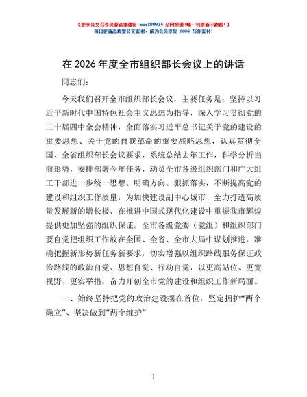 / 在2026年度全市组织部长会议上的讲话