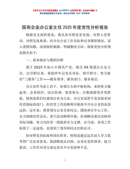 / 国有企业办公室主任2025年度党性分析报告