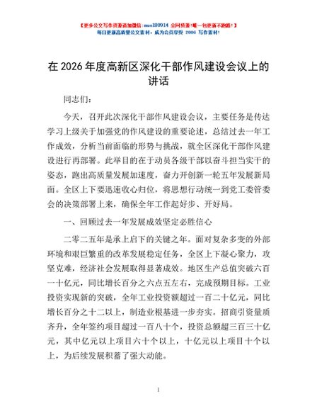 / 在2026年度高新区深化干部作风建设会议上的讲话