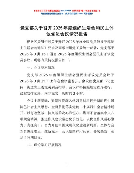 / 党支部关于召开2025年度组织生活会和民主评议党员会议情况报告