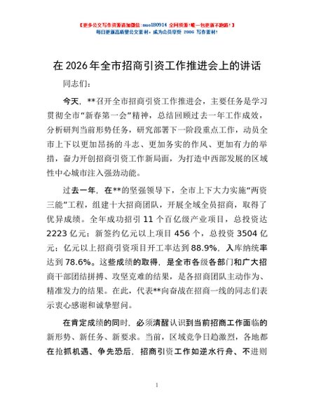 / 在2026年全市招商引资工作推进会上的讲话
