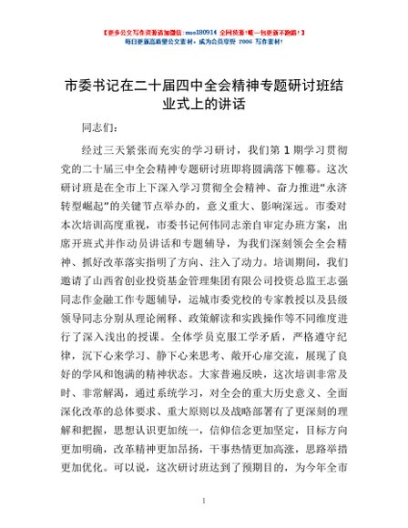 / 市委书记在二十届四中全会精神专题研讨班结业式上的讲话