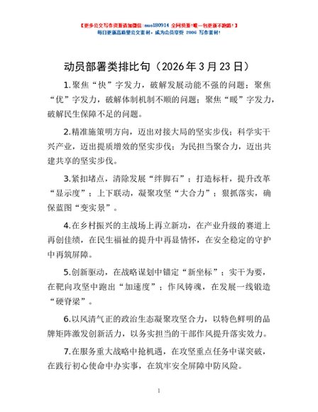 / 动员部署类排比句(2026年3月23日)