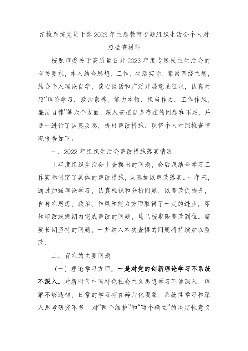 / 纪检系统党员干部2023年主题教育专题组织生活会个人对照检查材料(1)
