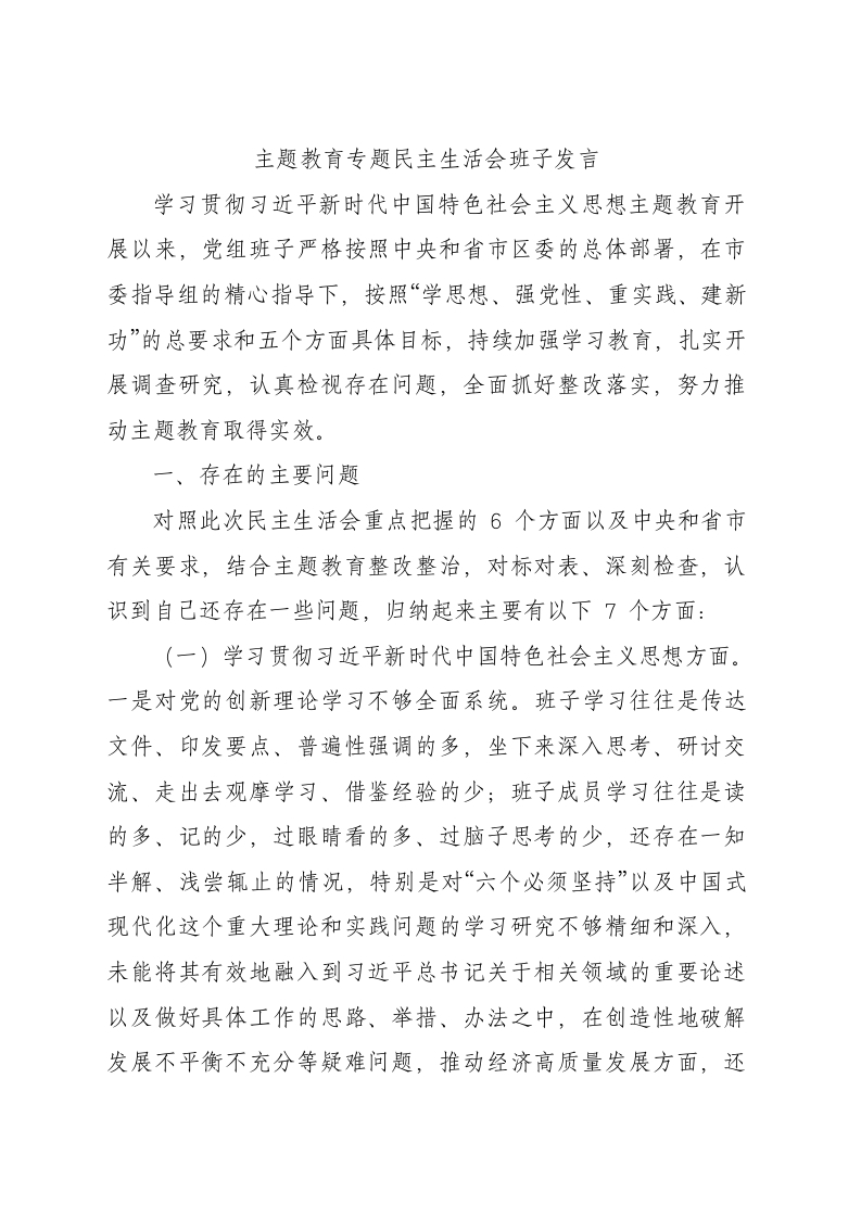 / 2023年度主题教育专题生活会班子对照检查6300字(最新6个方面“践行宗旨、服务人民”+政绩观)(1)