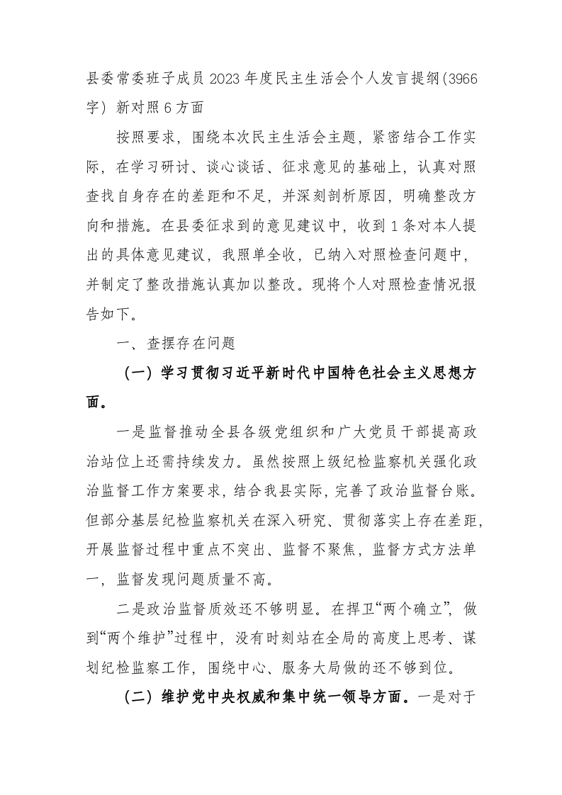 / 处级2023年主题教育民主生活会个人对照检查材料(践行宗旨等6个方面)(1)