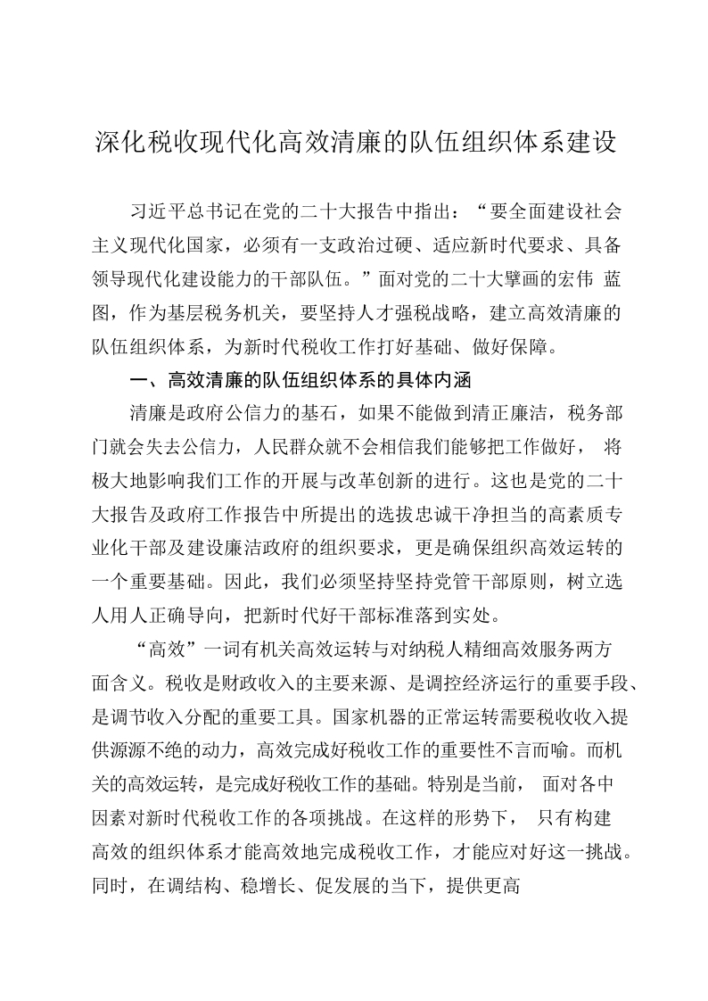 2023深化税收现代化”高效清廉的队伍组织体系“建设