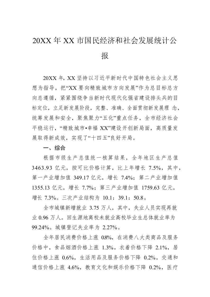 / 20XX年XX市国民经济和社会发展统计公报(20220402)