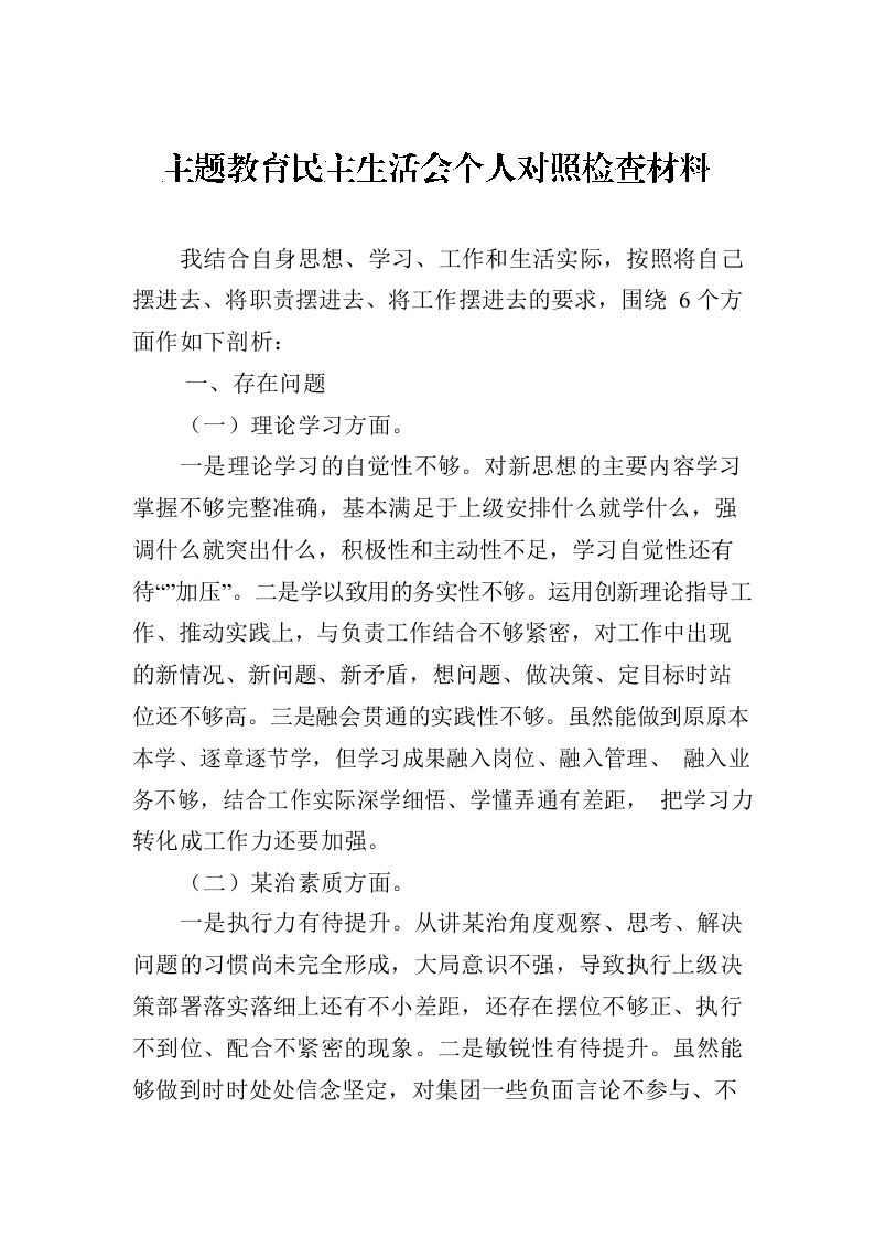 主题教育民主生活会“廉洁自律”对照检查素材7300字