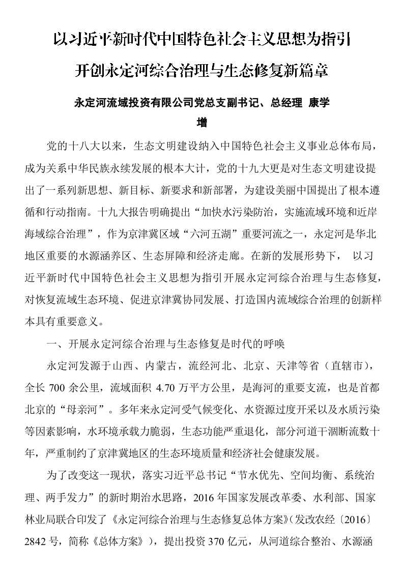 / 以习近平新时代中国特色社会主义思想为指引开创永定河综合治理与生态修复新篇章