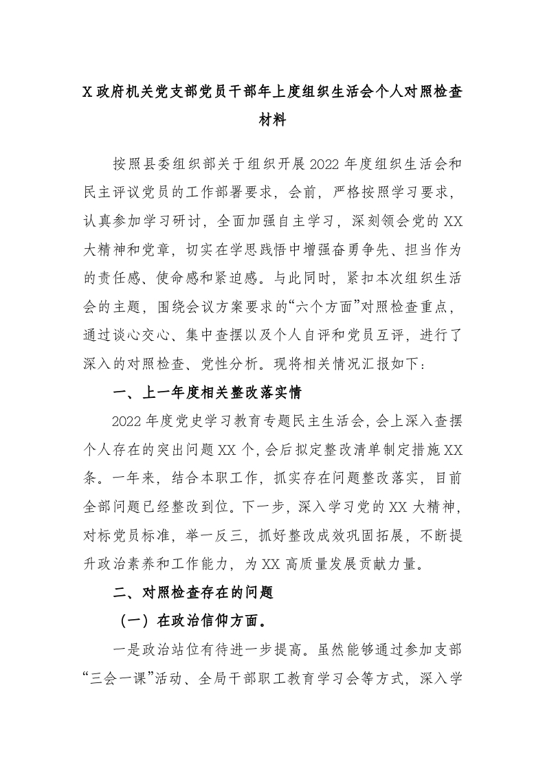 / 政府机关党支部党员干部年上度组织生活会个人对照检查材料