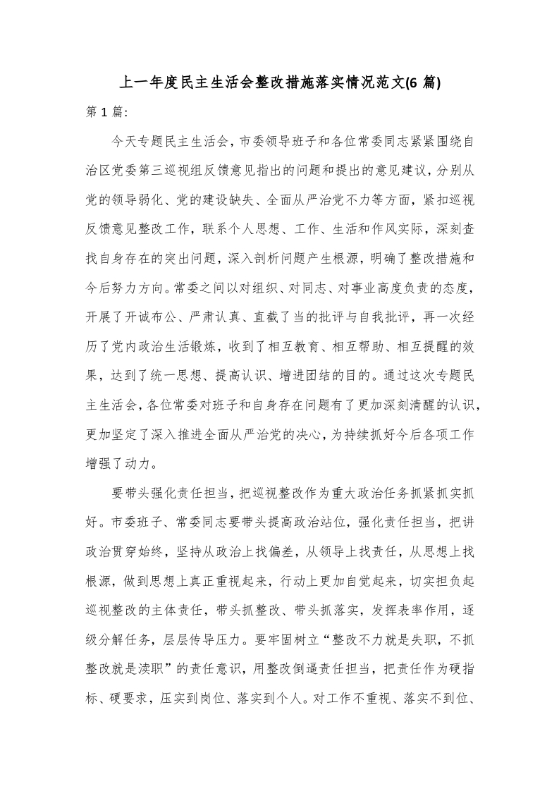 / (6篇)上一年度民主生活会整改措施落实情况范文