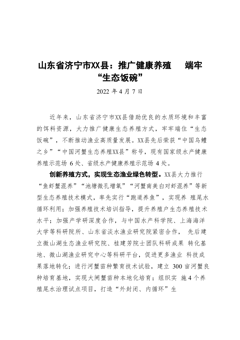 / XXX县:推广健康养殖 端牢“生态饭碗”20220407
