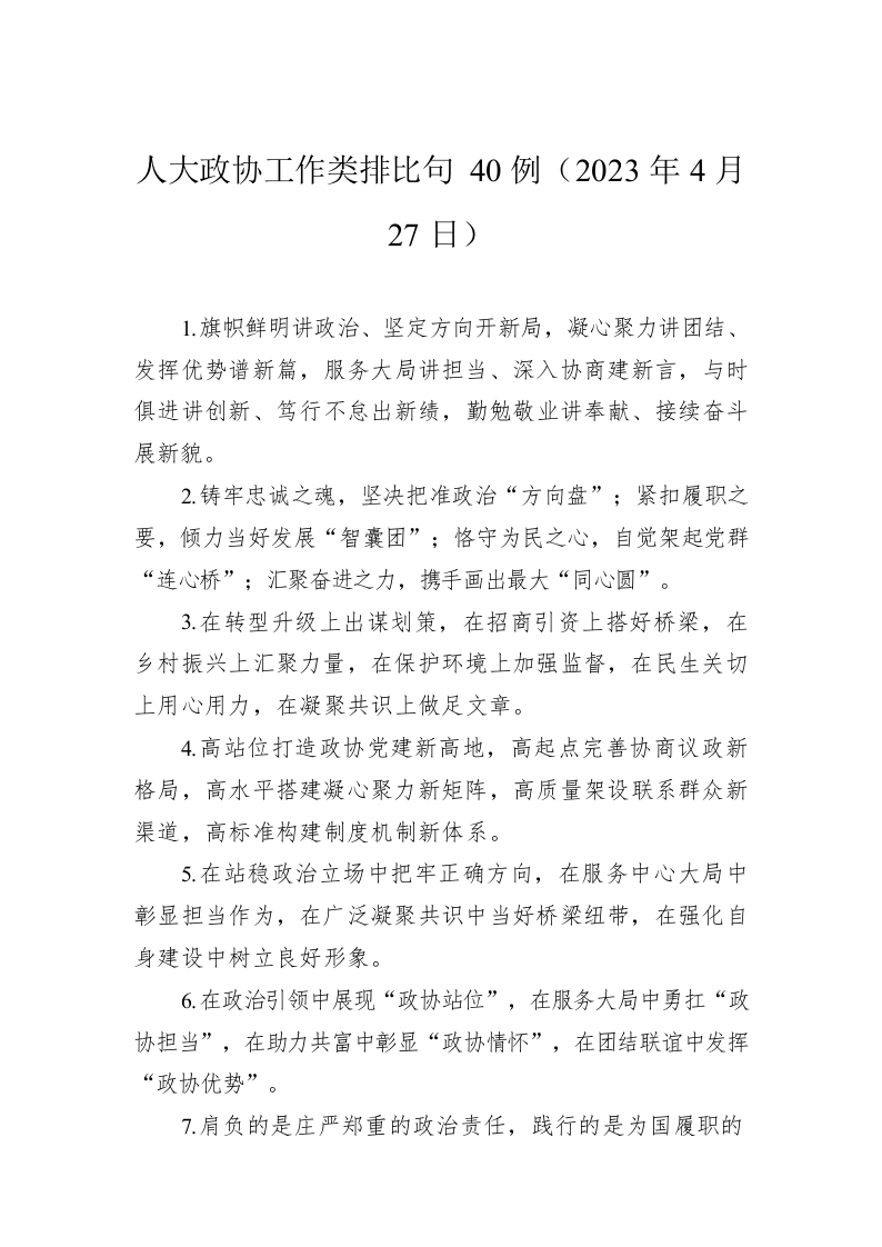 / 人大政协工作类排比句40例(2023年4月27日)