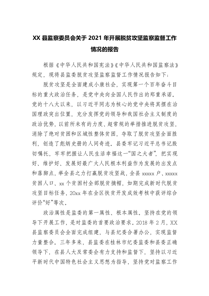 / 2021年开展脱贫攻坚监察监督工作情况的报告