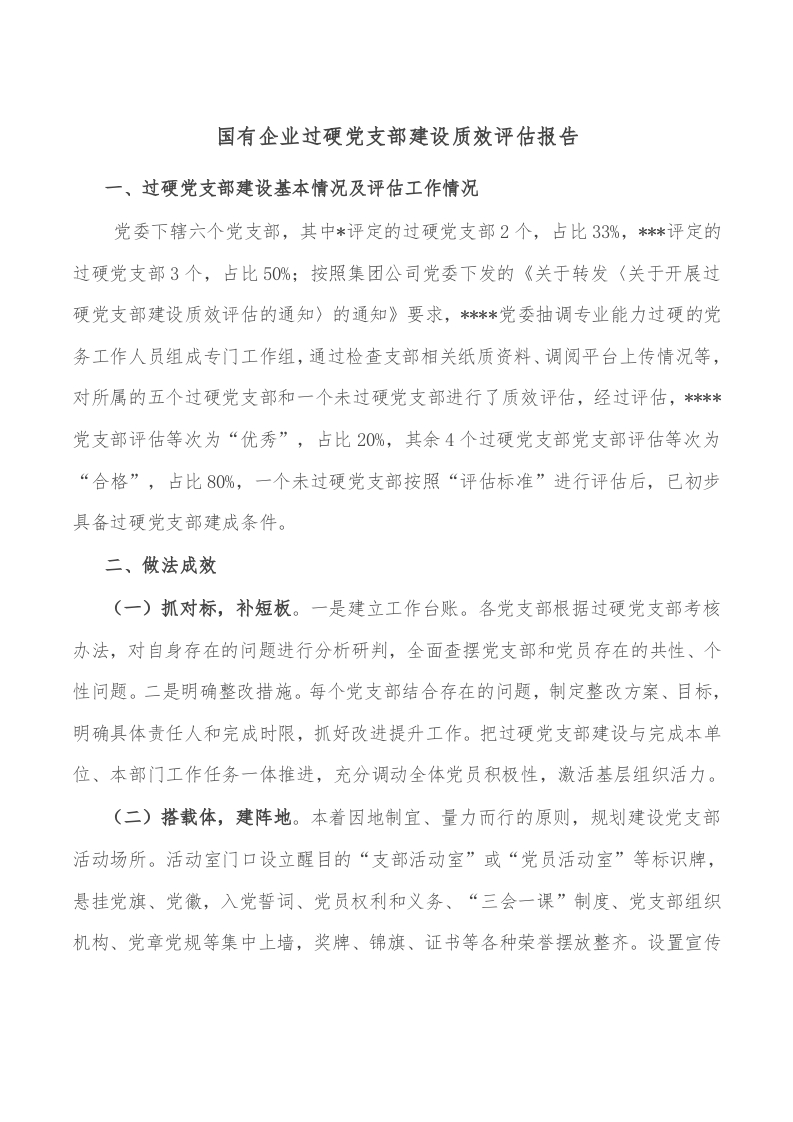 / 国有企业过硬党支部建设质效评估报告