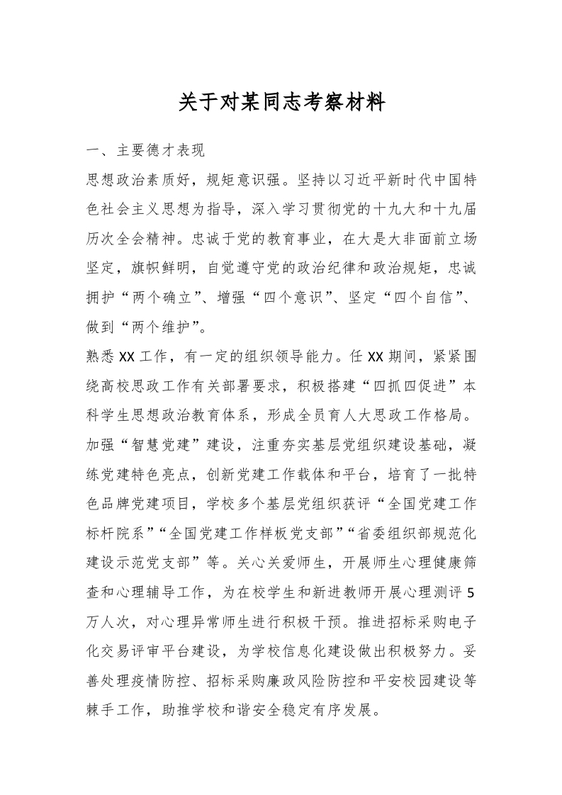 / 关于对某同志考察材料