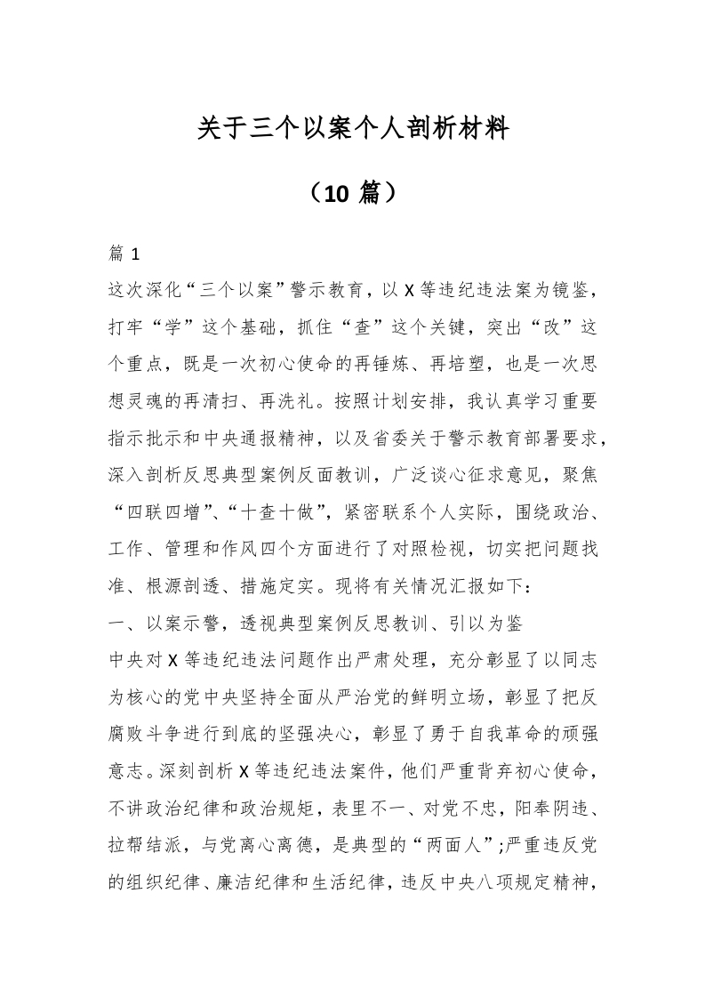 / (10篇)关于三个以案个人剖析材料