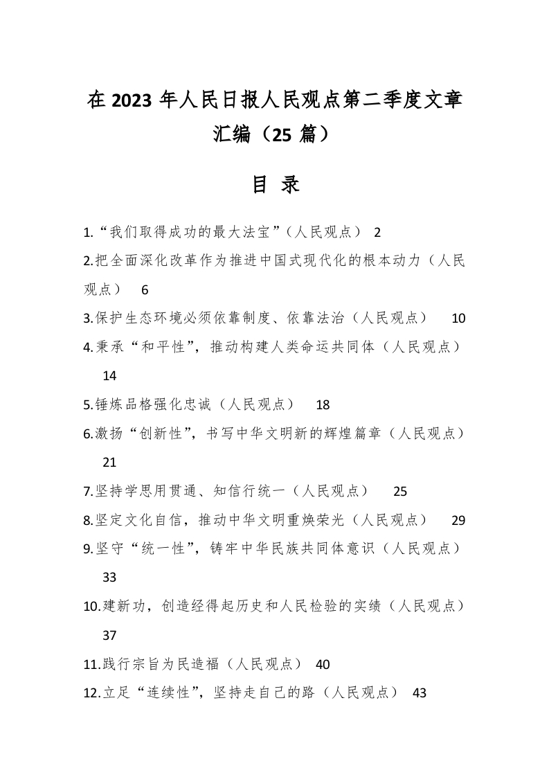 / (25篇)在2023年人民日报人民观点第二季度文章汇编
