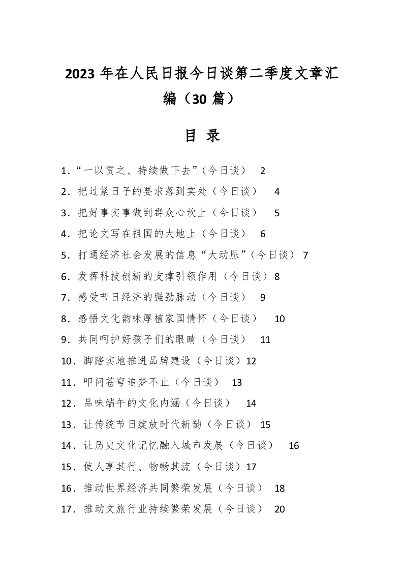 / (30篇)2023年在人民日报今日谈第二季度文章汇编