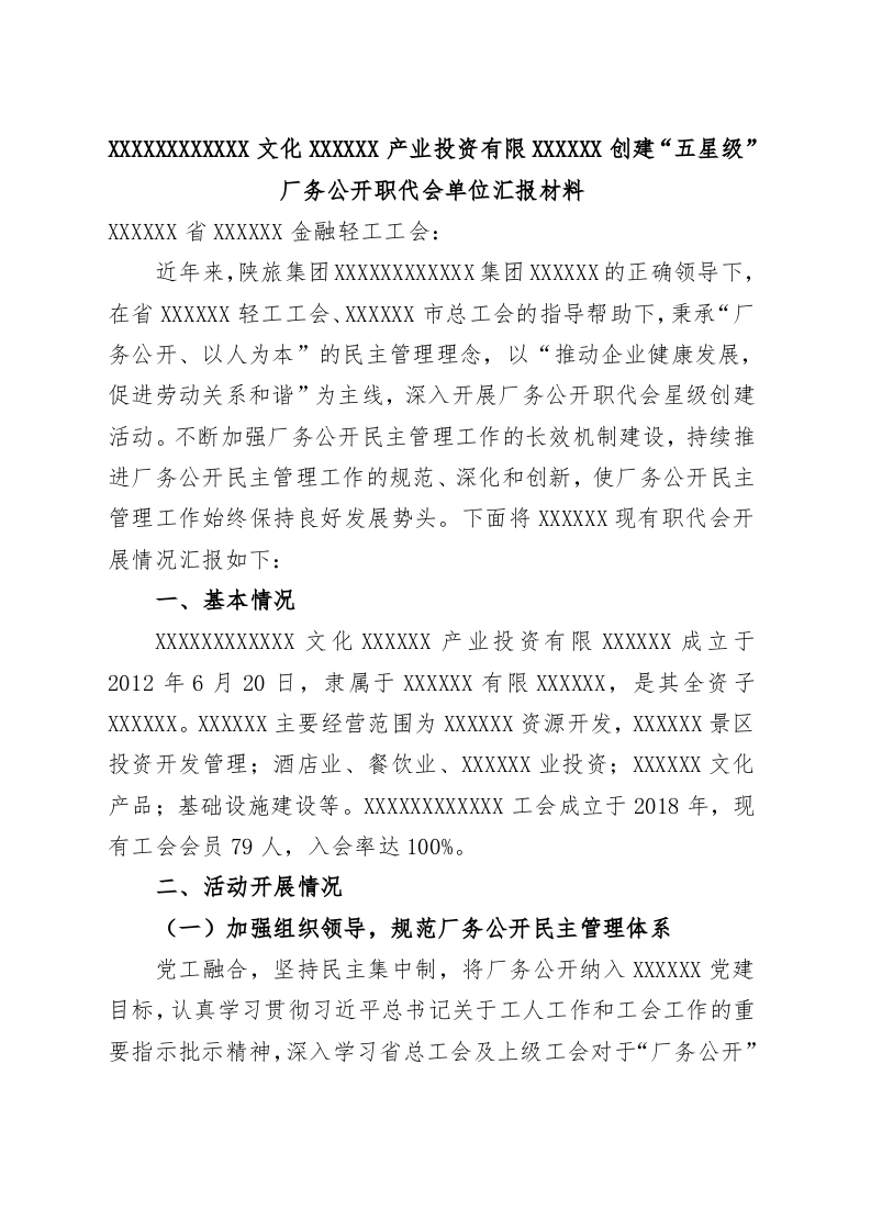 / 创建“五星级”厂务公开职代会单位汇报材料