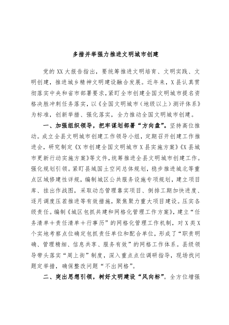 / 多措并举强力推进文明城市创建