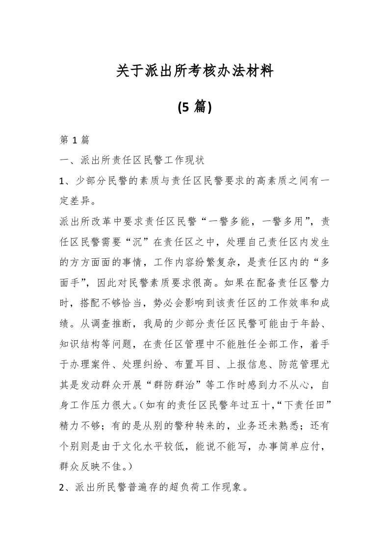 / (5篇)关于派出所考核办法材料