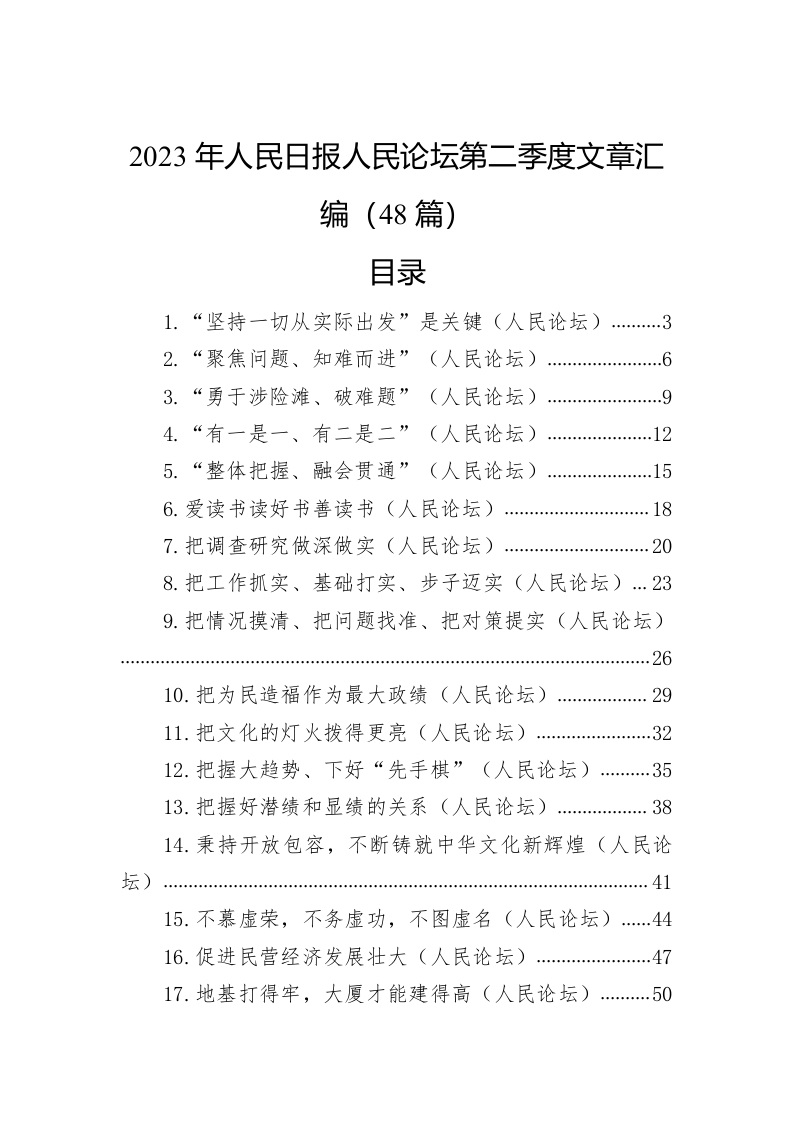 / 2023年人民日报人民论坛第二季度文章汇编(48篇)