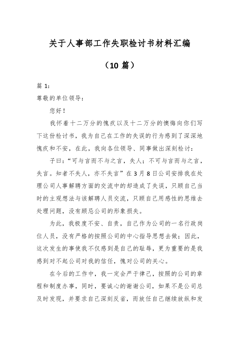 / (10篇)关于人事部工作失职检讨书材料汇编