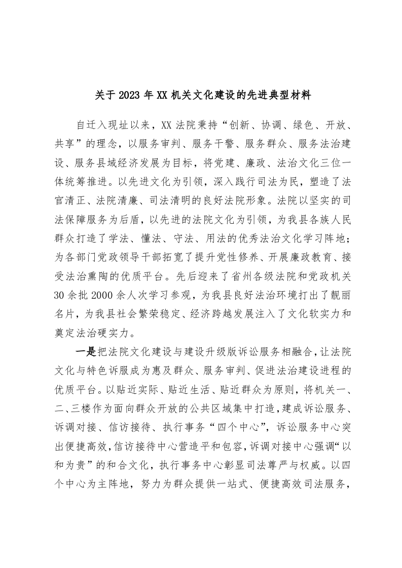/ 关于2023年XX机关文化建设的先进典型材料