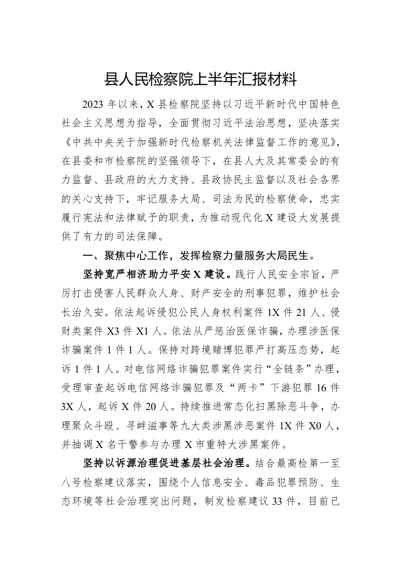 / 县人民检察院上半年汇报材料