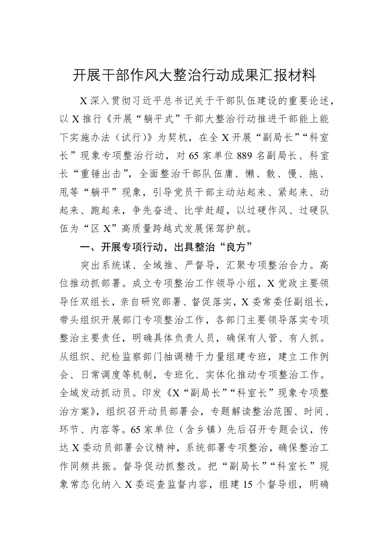 开展干部作风大整治行动成果汇报材料