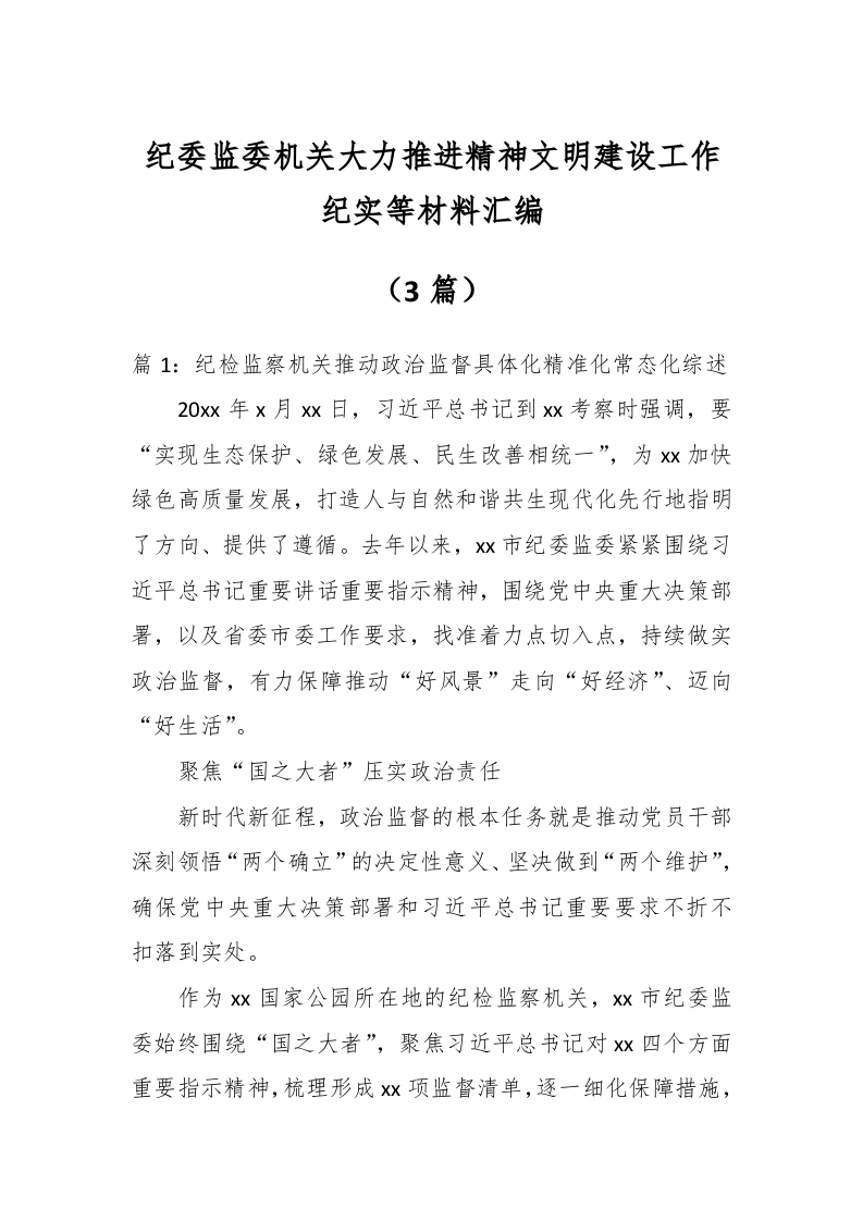 (3篇)关于纪委监委机关大力推进精神文明建设工作纪实等材料汇编