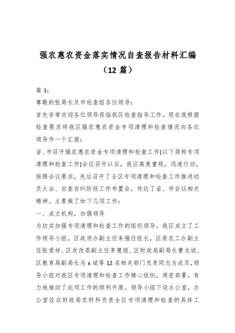 / (12篇)强农惠农资金落实情况自查报告材料汇编