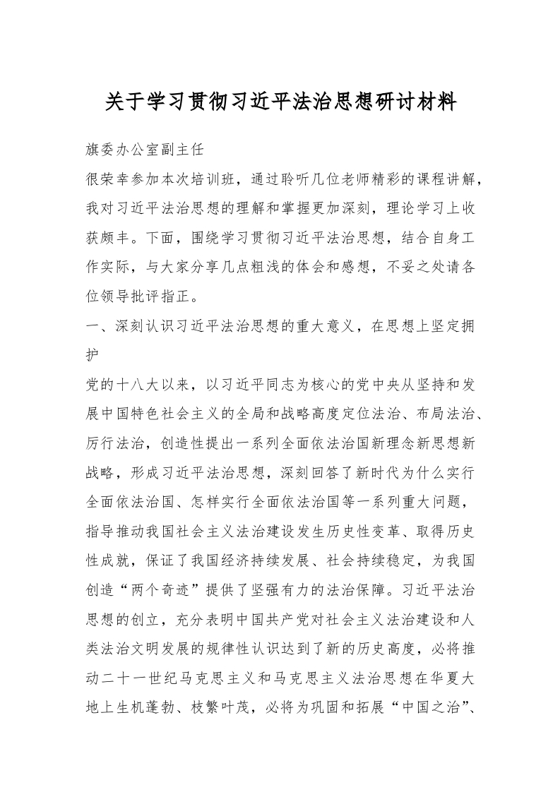 / 关于学习贯彻习近平法治思想研讨材料