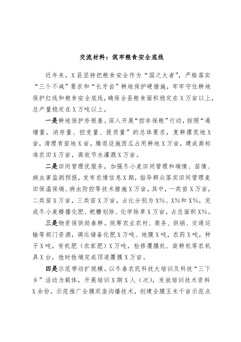 交流材料:筑牢粮食安全底线